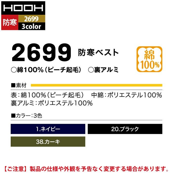 村上被服 HOOH 鳳凰 作業服 作業着 村上被服 HOOH 鳳凰 作業服 防寒着 2699 防寒ベスト M-3L 秋冬