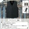 ●秋冬用●素材:リップ[表]ポリエステル100%、[裏]起毛トリコット ポリエステル100%、[中綿]ポリエステル100%、ファスナー/フロント:コイル(引き手 金属)、中綿キルト●バッテリーも入る脇ポケット、穴かがり(コード通し)(右脇ポケット)●サイズ:M(着丈/64、肩幅/37、胸囲/92)、L(着丈/62、肩幅/39、胸囲/100)、LL(着丈/64、肩幅/41、胸囲/108)●カラー:ブラック