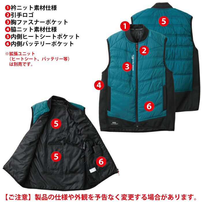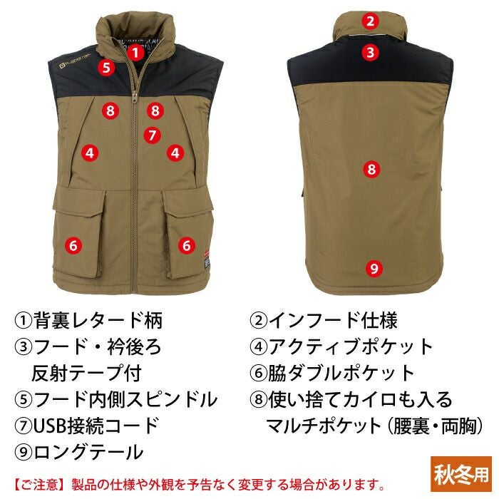 コーコス 作業服 作業着 作業ズボン 防寒着 秋冬用 コーコス G-8089 ボルトヒートベスト SS-5L