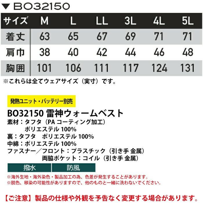 サンエス 作業服 作業着 作業ズボン サンエス 作業服 防寒着 BO32150 雷神ウォームベスト M-5L 秋冬 作業着