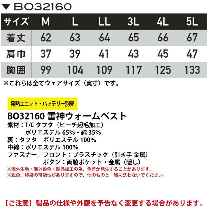 サンエス 作業服 作業着 作業ズボン サンエス 作業服 防寒着 BO32160 雷神ウォームベスト M-5L 秋冬 作業着
