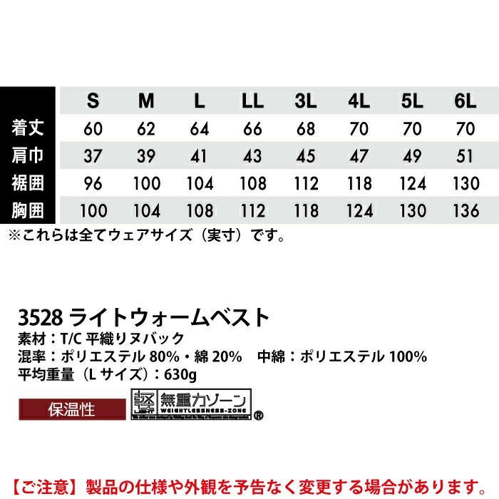 藤和 TSDESIGN 作業服 作業着 作業ズボン 藤和 TSDESIGN 作業服 3528 ライトウォームベスト 5L 防寒着 作業服 作業着