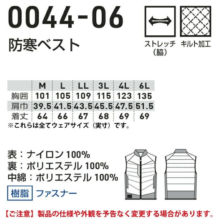 桑和 SOWA 作業服 作業着 作業ズボン 桑和 SOWA 作業服 防寒着 秋冬用 0044-06 防寒ベスト 6L