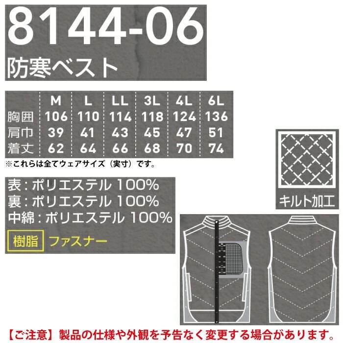桑和 SOWA 作業服 作業着 作業ズボン 桑和 SOWA 作業服 防寒着 秋冬用 8144-06 防寒ベスト 3L