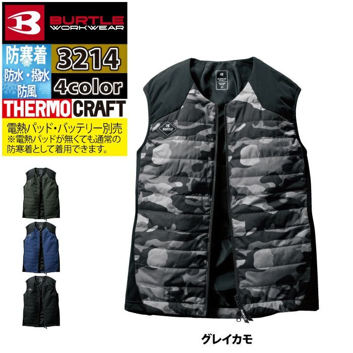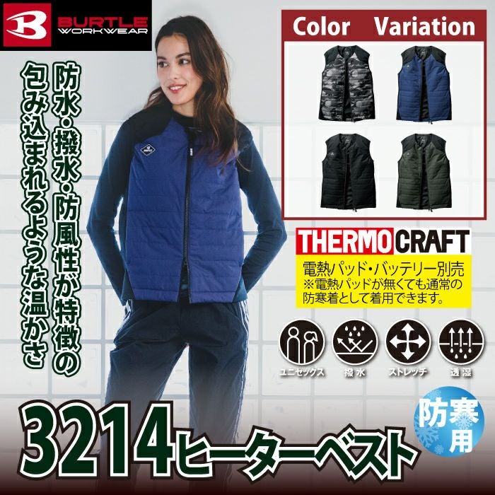 ユニセックス ストレッチ 撥水 防風 保温 バートル BURTLE 作業着 防寒着 3214 ヒーターベスト S-XL 秋冬 TC500サーモクラフト対応