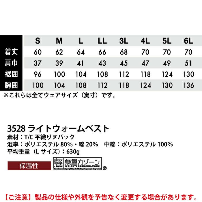 藤和 TSDESIGN 作業服 作業着 作業ズボン 藤和 TSDESIGN 防寒着 秋冬用 3528 ライトウォームベスト 5L-6L
