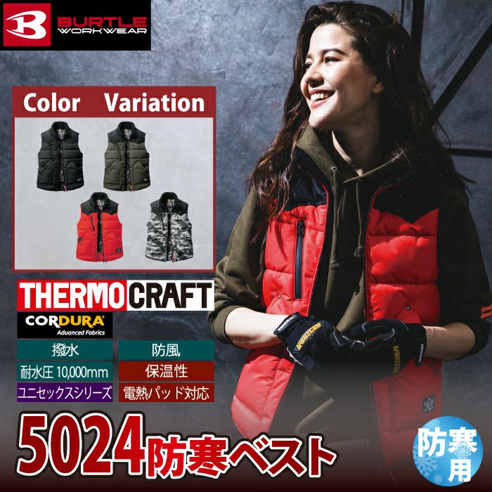 TC対応!ウエスタン風デザイン バートル BURTLE 作業着 防寒着 5024 防寒ベスト 3XL 秋冬用 TC500サーモクラフト電熱パッド対応商品 作業服