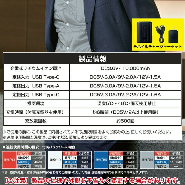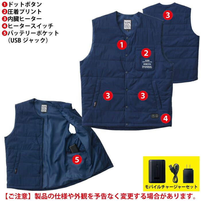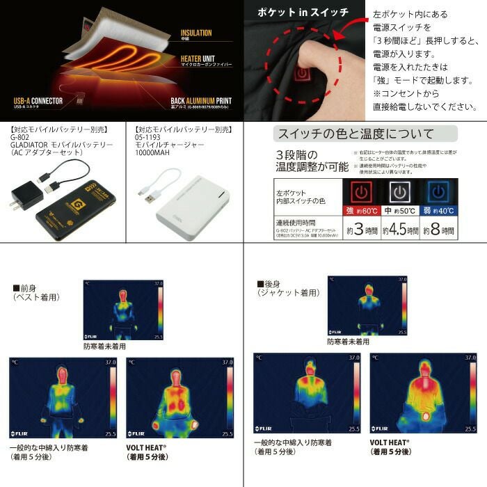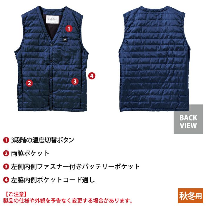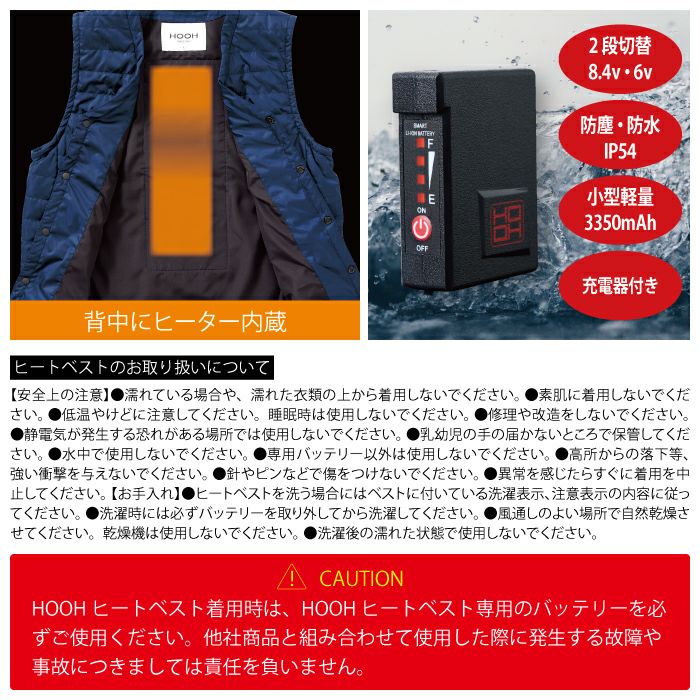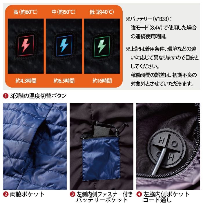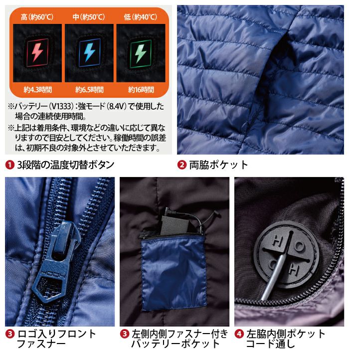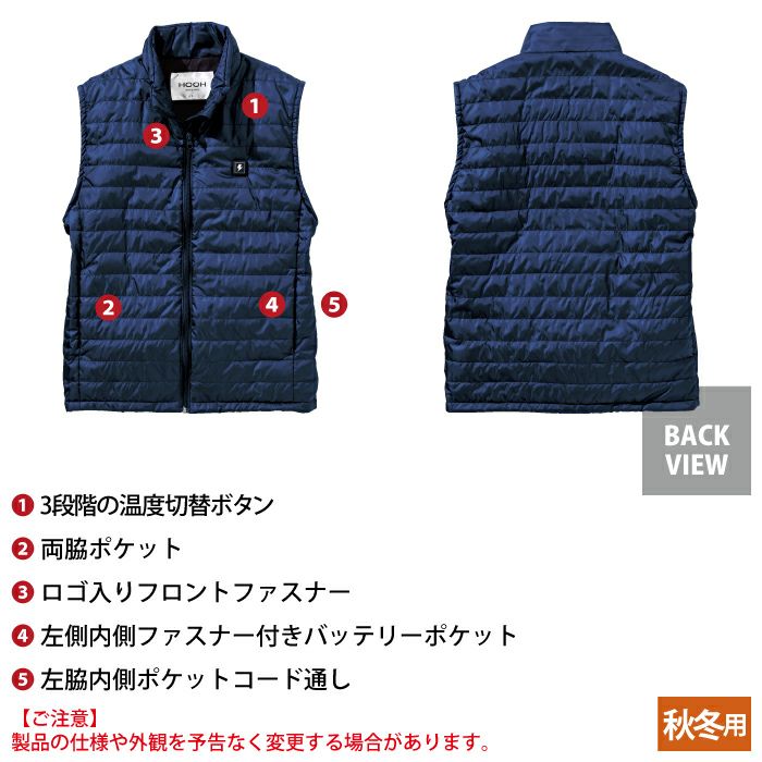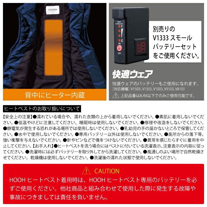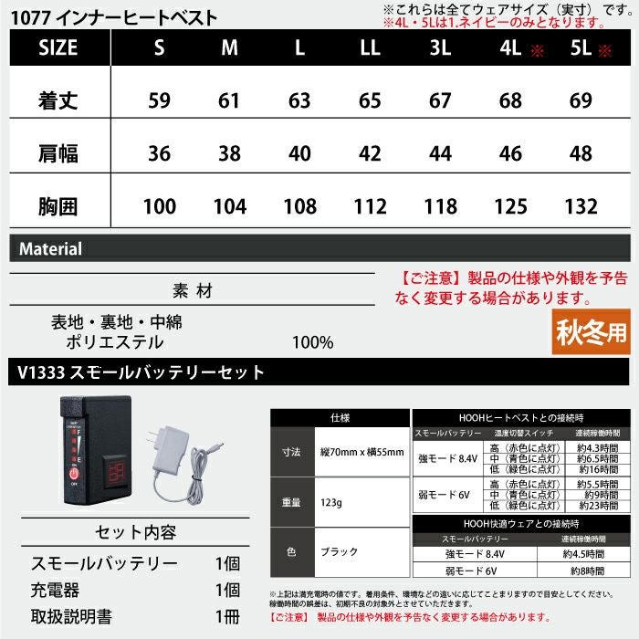 作業服 作業着 村上被服 HOOH 鳳凰 作業服 1077setR5 インナーヒートベストとスモールバッテリのセット S