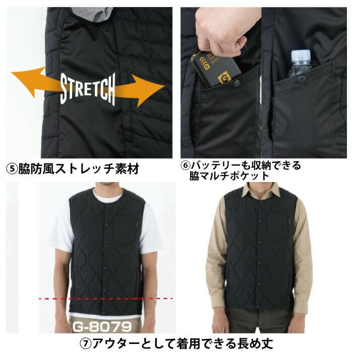 コーコス 作業服 作業着 作業ズボン 防寒着 秋冬用 コーコス G-8079 ボルトヒートクルーネックベスト SS-5L