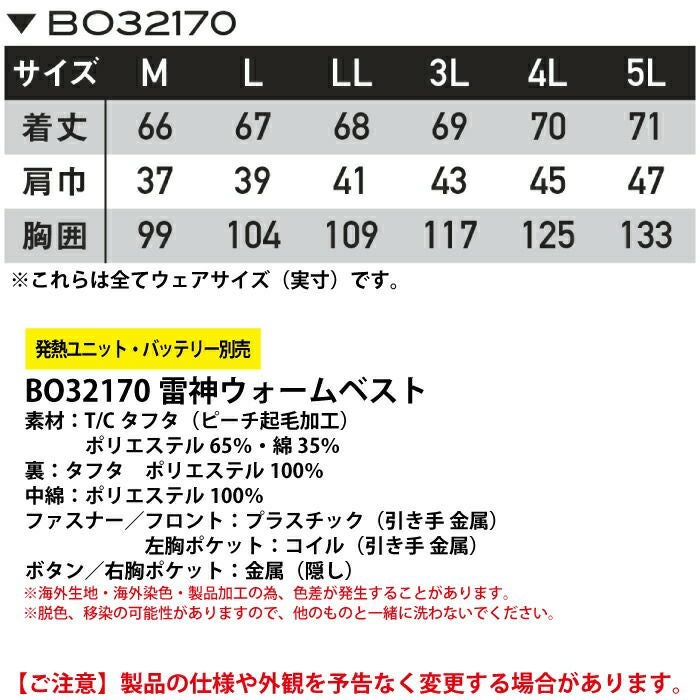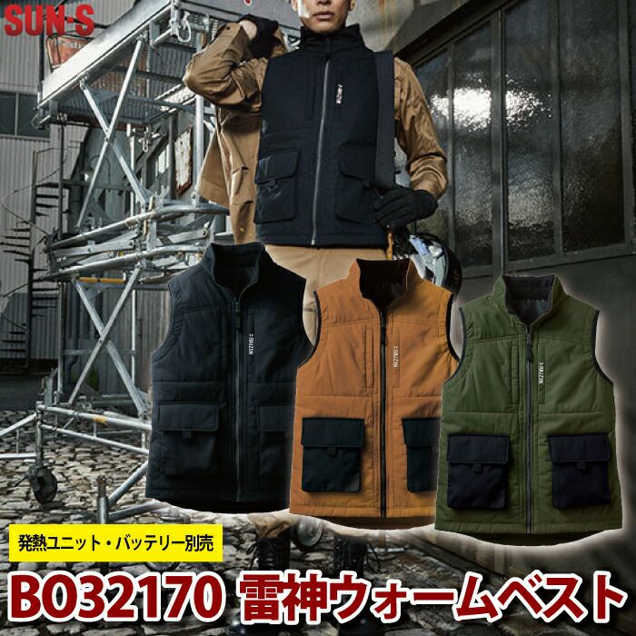 サンエス 作業服 作業着 作業ズボン サンエス 作業服 防寒着 BO32170 雷神ウォームベスト M-5L 秋冬 作業着