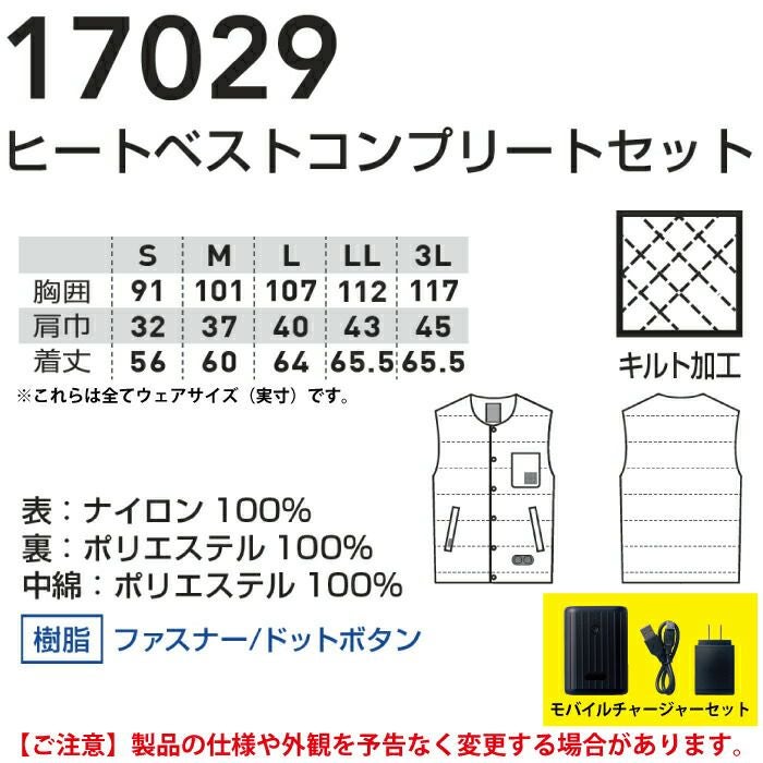 桑和 SOWA 作業服 防寒着 秋冬用 17029 ヒートベストコンプリートセット S-LL