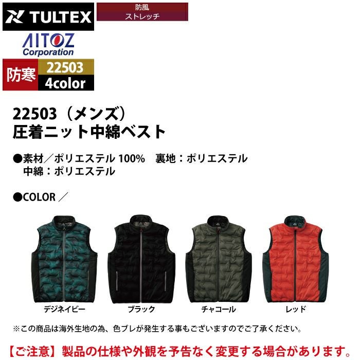 アイトス Aitoz 作業服 作業着 作業ズボン アイトス 作業服 防寒着 Aitoz 秋冬用 22503 圧着ニット中綿ベスト(メンズ) M-3L