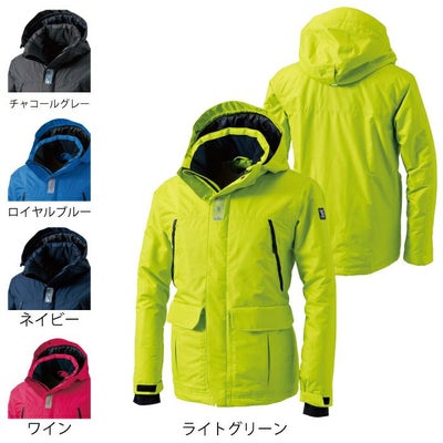 ●関連商品※8127防水防寒ライトウォームジャケット※8122防水防寒ライトウォームパンツ●秋冬用●素材:防水リップストップ(PUコーティング) [防水リップストップ・中綿]ポリエステル100%●超軽量、防水、撥水加工、防風、保温性、透湿、反射機能、チンガード+オリジナルハンドル、反射ワッペン(前立て)、インナーカフ仕様、左袖ブランドネーム、脱着式フード●サイズ:S(着丈/71、肩巾/44、袖丈/62、胸囲/112)、M(着丈/73、肩巾/46、袖丈/64、胸囲/117)、L(着丈/75、肩巾/48、袖丈/66、胸囲/122)、LL(着丈/77、肩巾/50、袖丈/68、胸囲/127)、3L(着丈/79、肩巾/52、袖丈/70、胸囲/132)、4L(着丈/81、肩巾/54、袖丈/70、胸囲/141)、5L(着丈/83、肩巾/56、袖丈/70、胸囲/150)、6L(着丈/83、肩巾/58、袖丈/70、胸囲/159)●カラー:チャコールグレー、ロイヤルブルー、ネイビー、ライトグリーン、ワイン