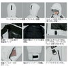 暖かく安全に作業ができるフルハーネス対応防寒。ハードな高所作業にも耐える丈夫なナイロンタッサーを使用し、ポケットにはすべてファスナーを装備。高所作業でのモノの落下を防ぎます。
