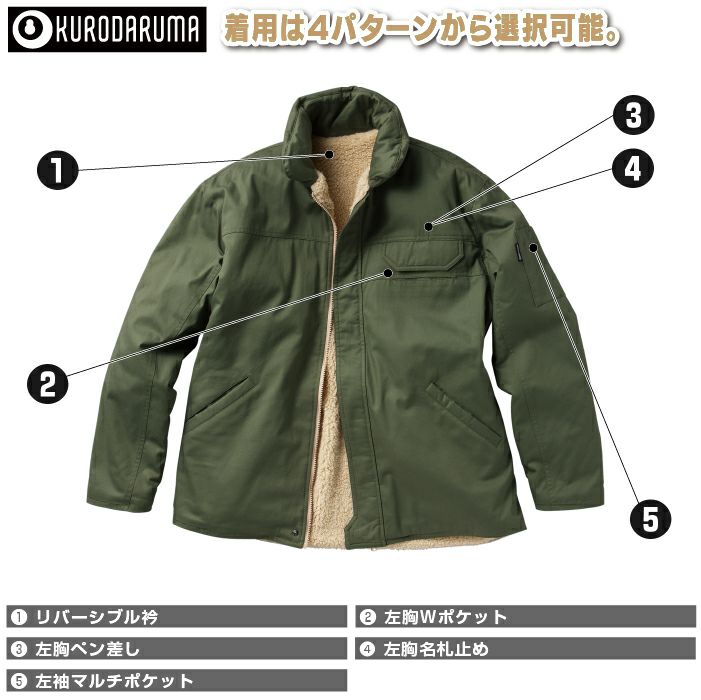 作業服 作業着 クロダルマ 作業服 防寒着 DG503 防寒コートN-1スタイル M-LL 秋冬用 作業着