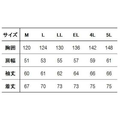 ●関連商品※48480防寒ブルゾン(フード付)※48483防寒ハーフコート(フード付)※48481防寒パンツ●秋冬用●素材/リップストップ 表地・ポリエステル100%、裏地・アルミプリント加工タフタ中綿100gキルト●裏地アップ●内ポケット●左袖ペン差し●袖口アジャスター●サイズ:M(胸囲/120、肩幅/51、袖丈/60、着丈/67)、L(胸囲/124、肩幅/53、袖丈/61、着丈/70)、LL(胸囲/130、肩幅/55、袖丈/62、着丈/73)、EL(胸囲/136、肩幅/57、袖丈/64、着丈/73)、4L(胸囲/142、肩幅/59、袖丈/66、着丈/75)、5L(胸囲/148、肩幅/61、袖丈/66、着丈/75)●カラー:オレンジ、ネイビー、ブラック