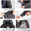 • 袖ペンさし(左)、両脇ウォームアップポケット、カフスアジャスター、マイクロブロックフリース、インナーカフス仕様、大型フードスピンドル付(マジックテープ+ファスナー脱着)(フード裏:アルミフィルムラミネート加工)、全天候型保温素材「サーモトロン ラジポカ」(ボディー背面)、内ポケット(左)、ウエストドローコード、アルミフィルムラミネート加工(ボディー胸面)