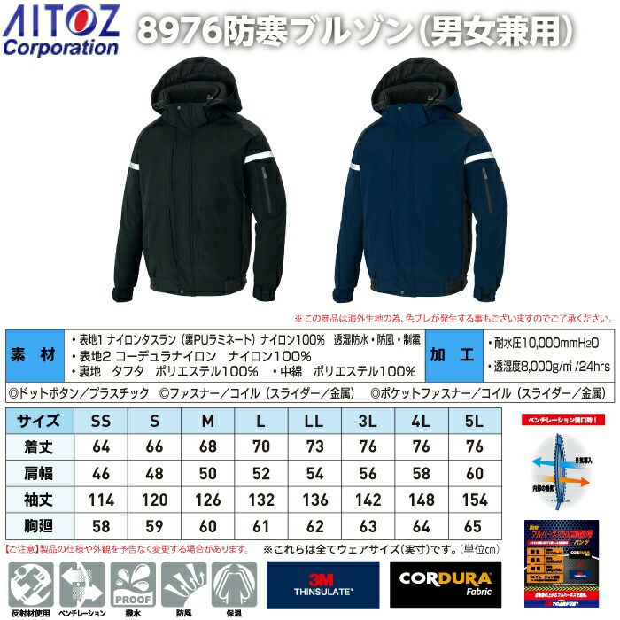 アイトス 作業服 防寒着 Aitoz 秋冬用 AZ-8976 防寒ブルゾン(男女兼用) SS-LL