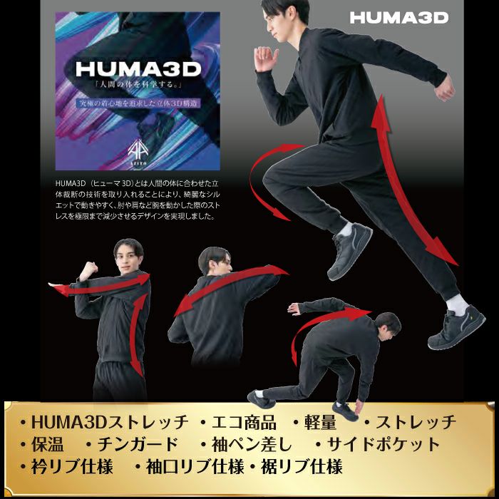 ◇機能:袖ペン差し・チンガード・サイドポケット・衿リブ仕様・袖口リブ仕様・裾リブ仕様・HUMA3D立体裁断