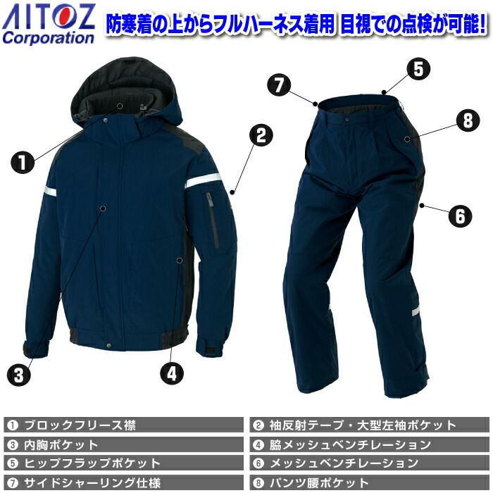 アイトス Aitoz 作業服 作業着 作業ズボン アイトス 作業服 防寒着 Aitoz 秋冬用 上下セット AZ-8976 防寒ブルゾン(男女兼用)SS-3L と AZ-8977 防寒パンツ(男女兼用) SS-3L 作業着 作業ズボン