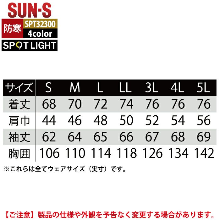 サンエス 作業服 作業着 作業ズボン サンエス 作業服 防寒着 SPT32300 ライトウォームジャケット 3L-5L 秋冬 作業着
