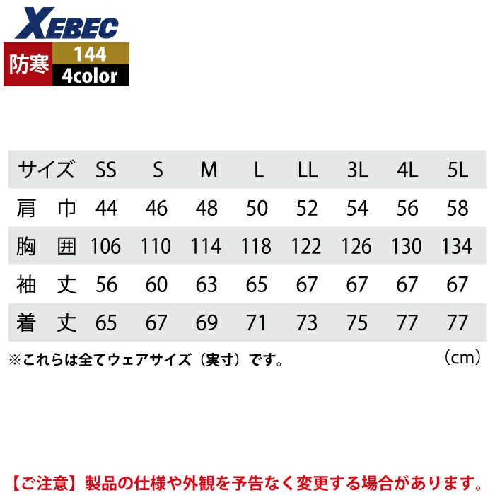 ジーベック XEBEC 作業服 作業着 作業ズボン ジーベック XEBEC 作業服 防寒着 144 軽防寒ブルゾン 3L 秋冬用 作業着