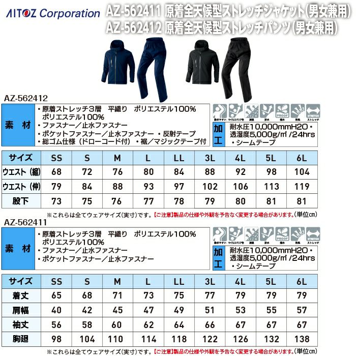アイトス Aitoz 作業服 作業着 作業ズボン アイトス 作業服 上下セット AZ-562411 原着全天候型ストレッチジャケットSS-3L と AZ-562412 原着全天候型ストレッチパンツ SS-3L