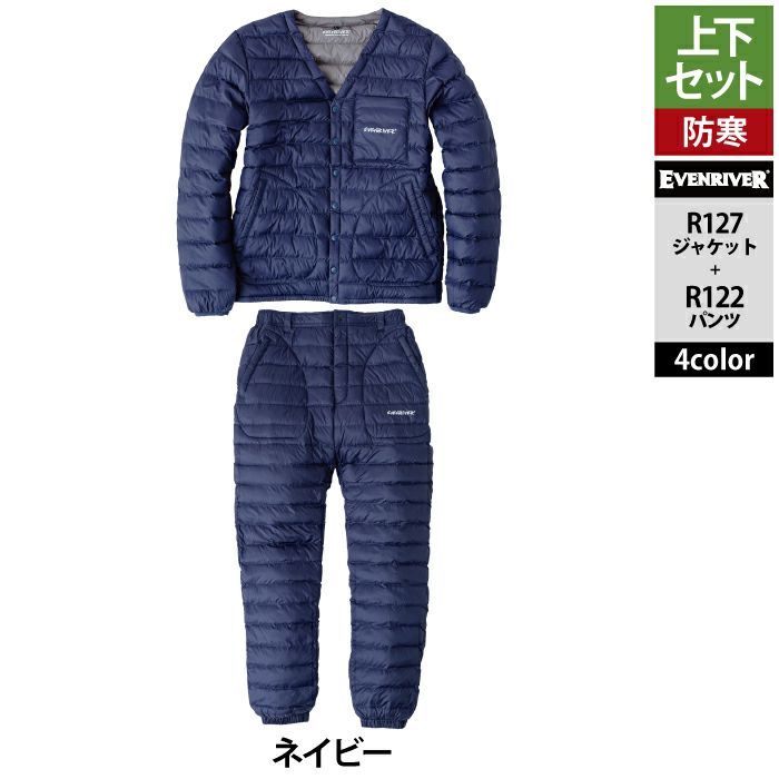 イーブンリバー 作業服 作業着 上下セット イーブンリバー EVENRIVER 作業服 上下セット R127 ファイバーダウンジャケットM-4L と R122 ファイバーダウンパンツ M-4L 作業ズボン 防寒着 秋冬用
