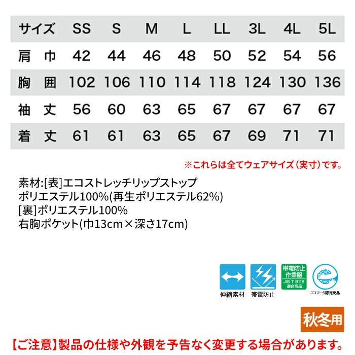 ジーベック XEBEC 作業服 作業着 作業ズボン ジーベック XEBEC 作業服 防寒着 143 制電軽防寒ブルゾン SS-LL 秋冬用 作業着