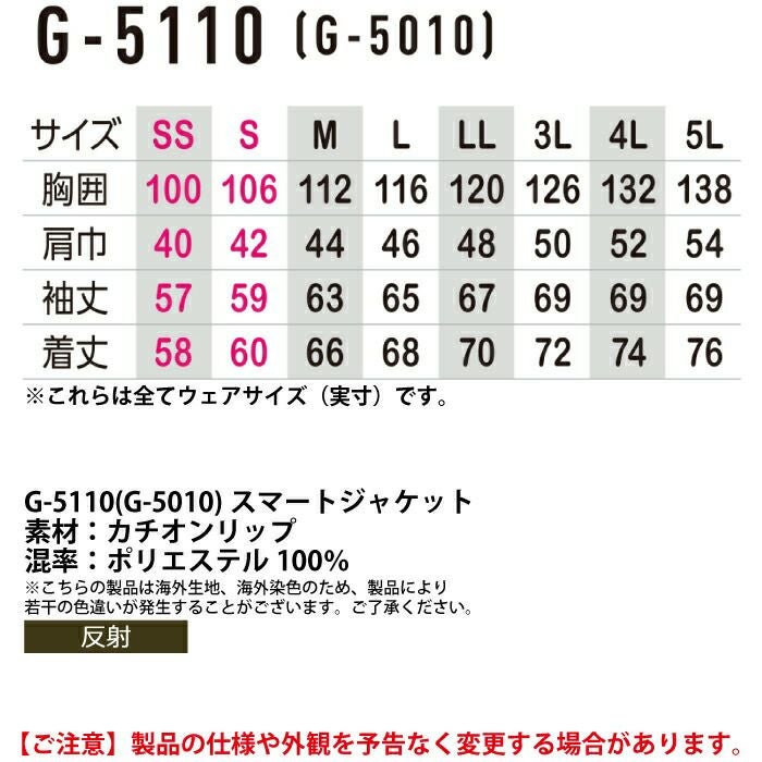 コーコス 作業服 作業着 作業ズボン 防寒着 秋冬用 コーコス G-5010 スマートジャケット 4L-5L