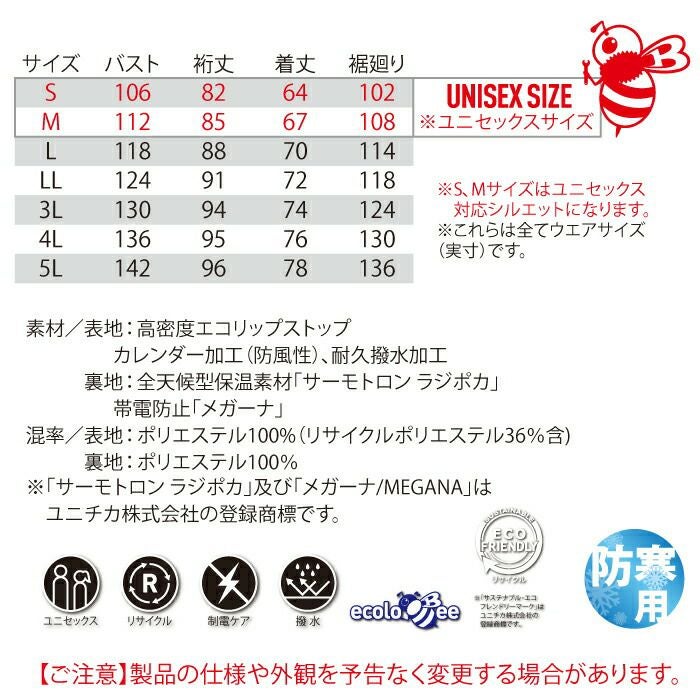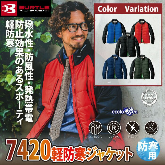 SDGs対応 エコロジカルな軽量防寒ウェア バートル BURTLE 7420 軽防寒ジャケット S~LL 2022AW新作 防寒着 秋冬用 撥水 防風 保温 ユニセックス エコ 帯電防止