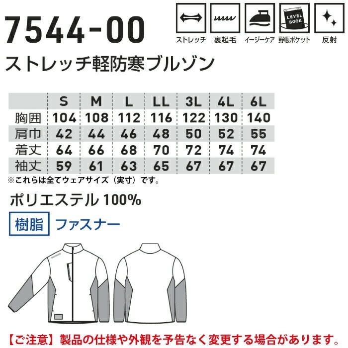 桑和 SOWA 作業服 作業着 作業ズボン 桑和 SOWA 作業服 防寒着 秋冬用 7544-00 ストレッチ軽防寒ブルゾン S-LL