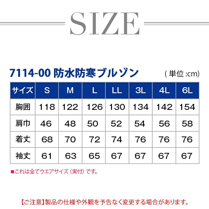桑和 SOWA 作業服 作業着 作業ズボン 桑和 SOWA 作業服 7114-00 防水防寒ブルゾン 6L 作業服 秋冬用