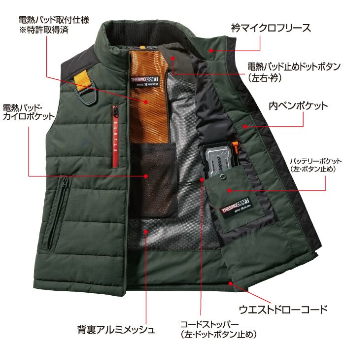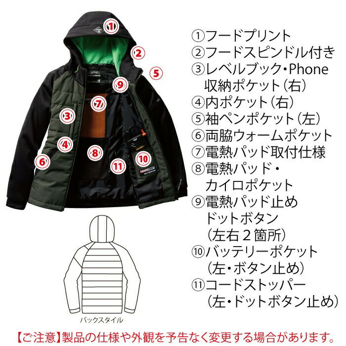 サーモクラフト対応!ハイブリッドジャケット バートル BURTLE 作業着 防寒着 3210 防風フーディジャケット XXL 秋冬用 ユニセックス TC500サーモクラフト電熱パッド対応商品 作業服