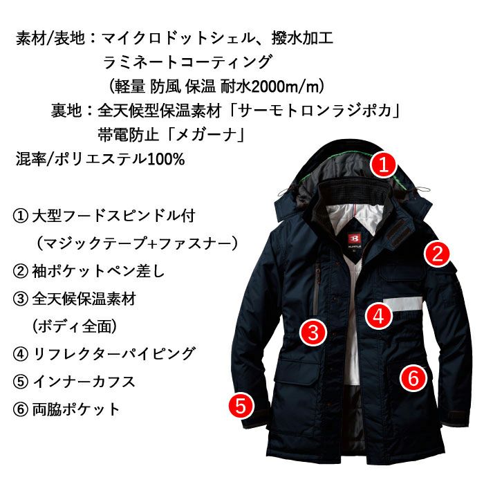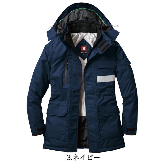 スーツにもキマる 本格防寒ウェア バートル BURTLE 作業着 防寒着 7211 防寒コート(大型フード付) 3L 作業服 軽量 防風 保温 耐水 サーモトロンラジポカ アウトドア