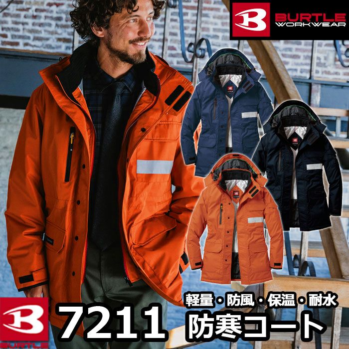 スーツにもキマる 本格防寒ウェア バートル BURTLE 作業着 防寒着 7211 防寒コート(大型フード付) SS-LL 作業服 軽量 防風 保温 耐水 サーモトロンラジポカ アウトドア