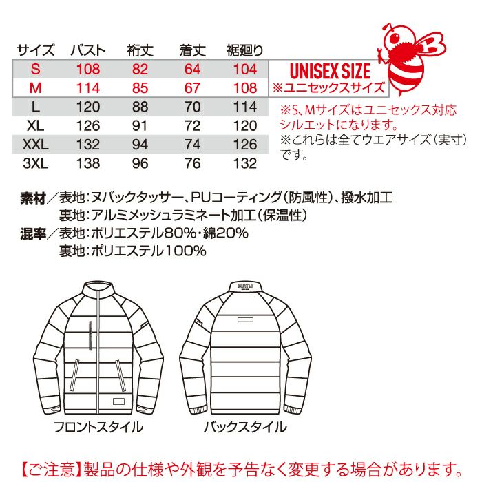 SDGs対応 エコロジカルな軽量防寒ウェア バートル BURTLE 作業着 防寒着 7420 軽防寒ジャケット 3L 秋冬用 撥水 防風 保温 ユニセックス エコ 帯電防止 作業服