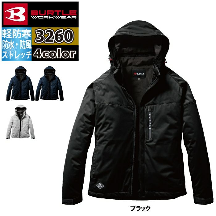 ユニセックス ストレッチ バートル BURTLE 作業着 防寒着 2024秋冬新作 3260 ストレッチフーディ防寒ジャケット S-XL 作業服 おしゃれ 撥水 防風 保温