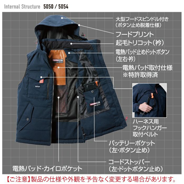 ユニセックス 防風 撥水 バートル BURTLE 作業着 防寒着 2024秋冬新作 5050 防寒ジャケット XXL 作業服 TC500サーモクラフト対応 撥水 防風 保温