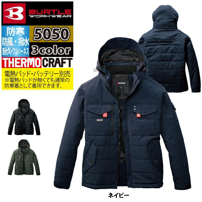 ユニセックス 防風 撥水 バートル BURTLE 作業着 防寒着 2024秋冬新作 5050 防寒ジャケット 3XL 作業服 TC500サーモクラフト対応 撥水 防風 保温