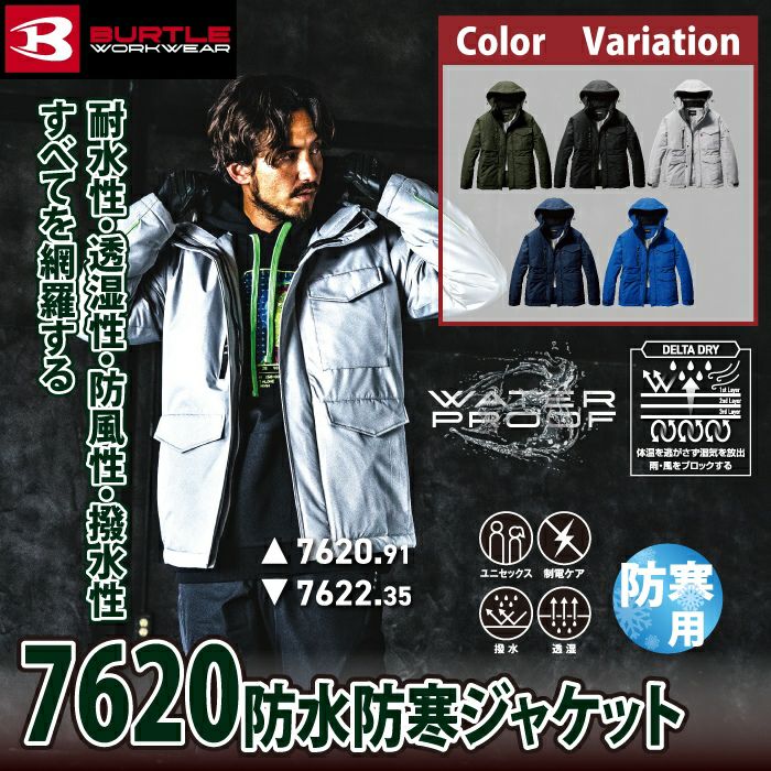 ユニセックス 防風 撥水 バートル BURTLE 作業着 防寒着 2024秋冬新作 7620 防水防寒ジャケット S-XL 作業服 耐水 透湿 撥水 防風 保温 軽量