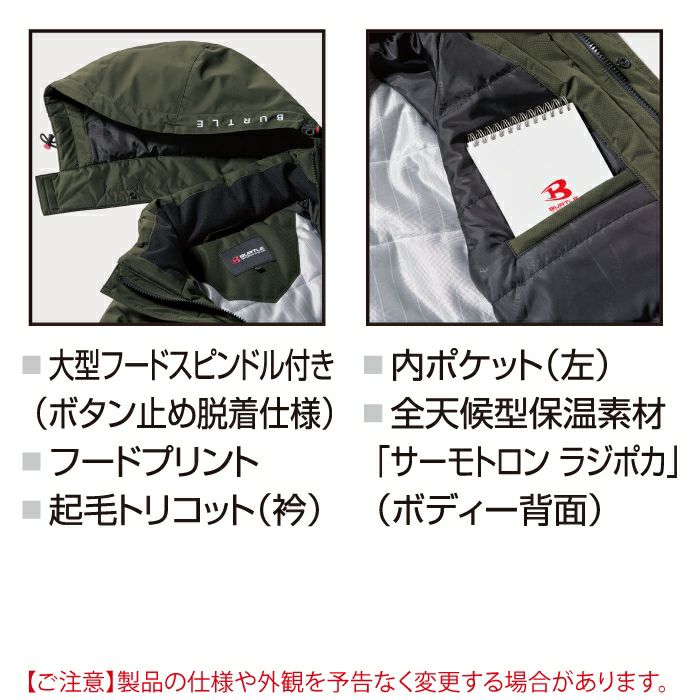 バートル BURTLE 作業着 防寒着 7610 防水防寒ジャケット(大型フード付) 5L 防風 撥水 保温 透湿 サーモトロンラジポカ アウトドア 作業服