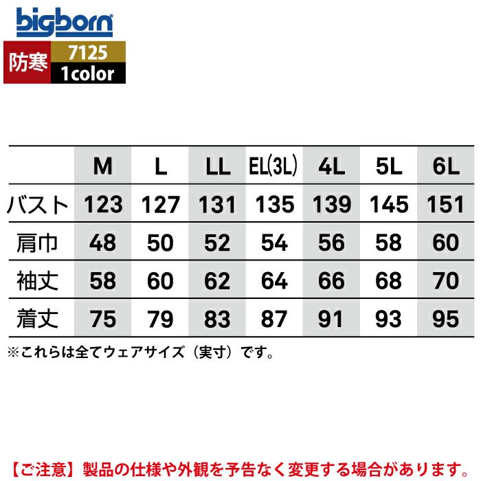 作業服 作業着 ビッグボーン bigborn 作業服 防寒着 7126 防寒ジャケット 3L 秋冬 作業着
