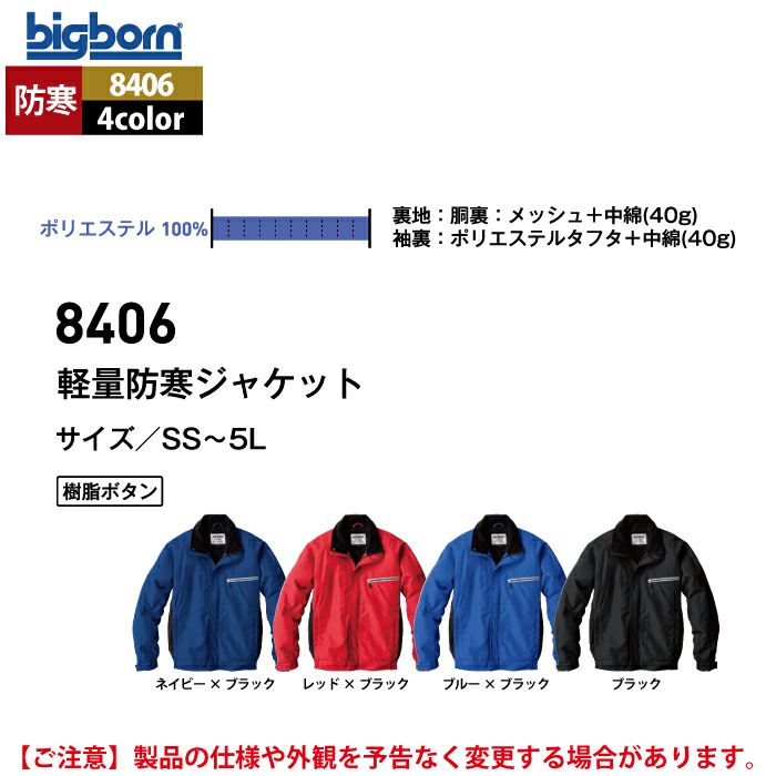 作業服 作業着 ビッグボーン bigborn 作業服 防寒着 8406 軽量防寒ジャケット 5L 秋冬 作業着