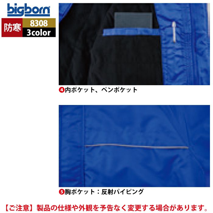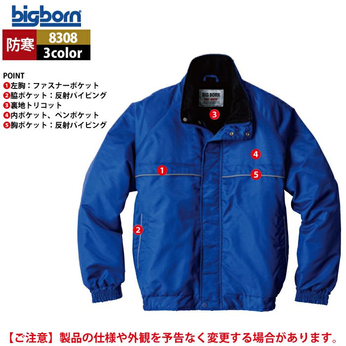 作業服 作業着 ビッグボーン bigborn 作業服 防寒着 8308 軽量防寒ジャケット 3L 秋冬 作業着