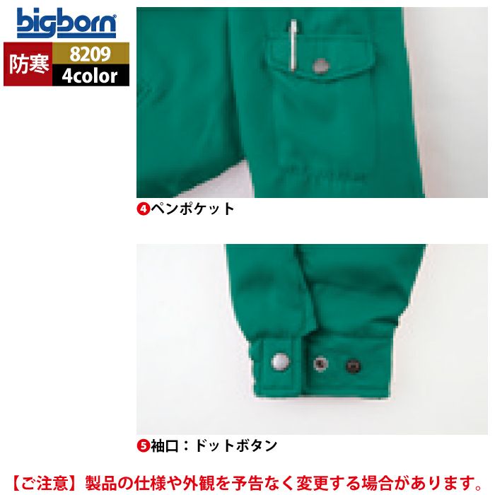 作業服 作業着 ビッグボーン bigborn 作業服 防寒着 8209 軽量防寒ジャケット 4L 秋冬 作業着