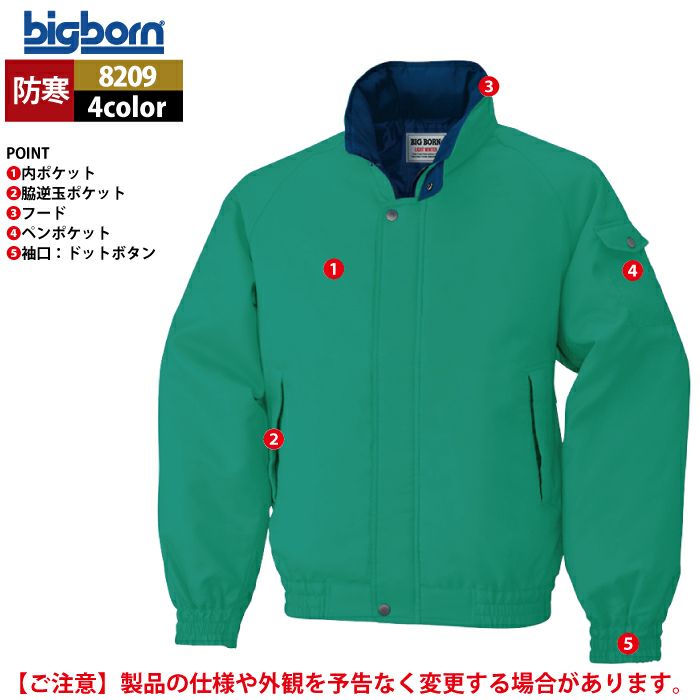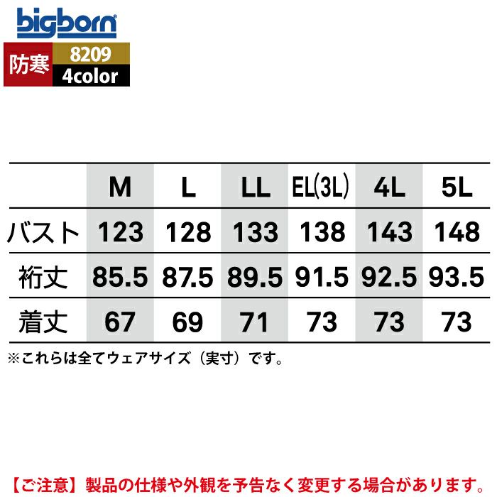 作業服 作業着 ビッグボーン bigborn 作業服 防寒着 8209 軽量防寒ジャケット 3L 秋冬 作業着