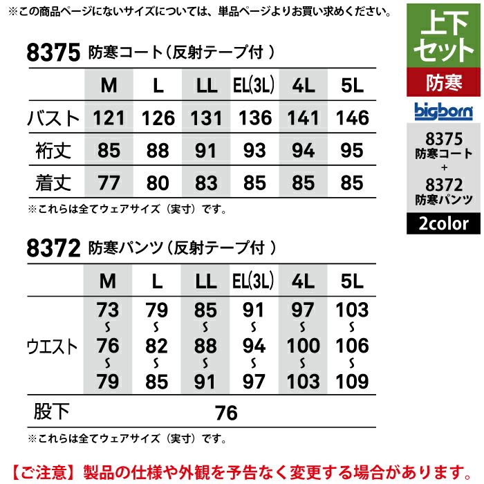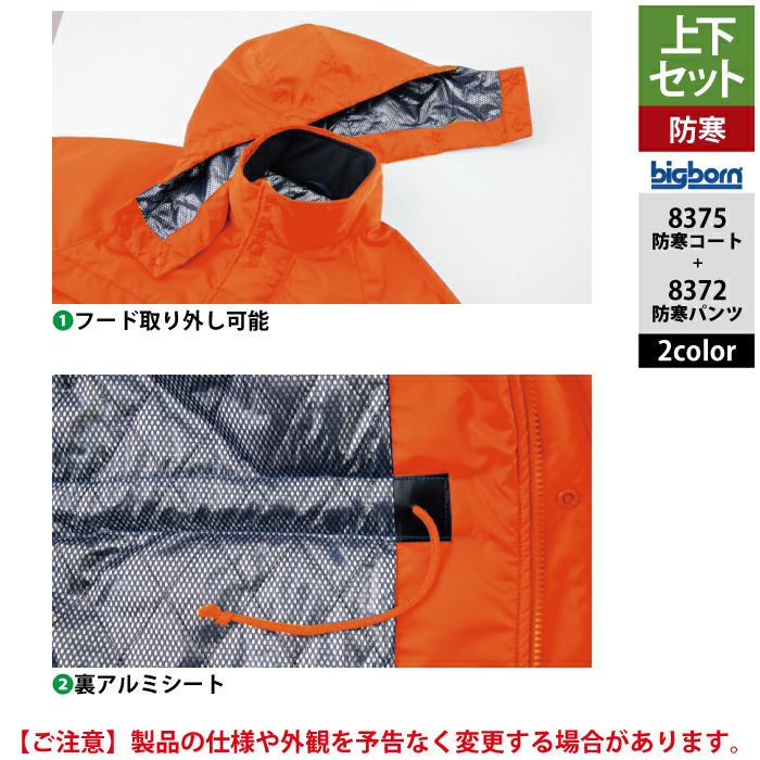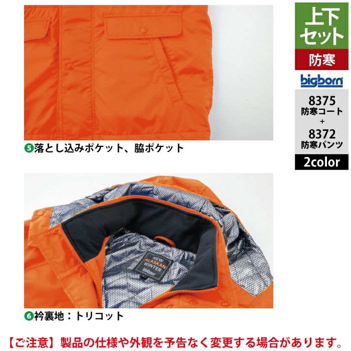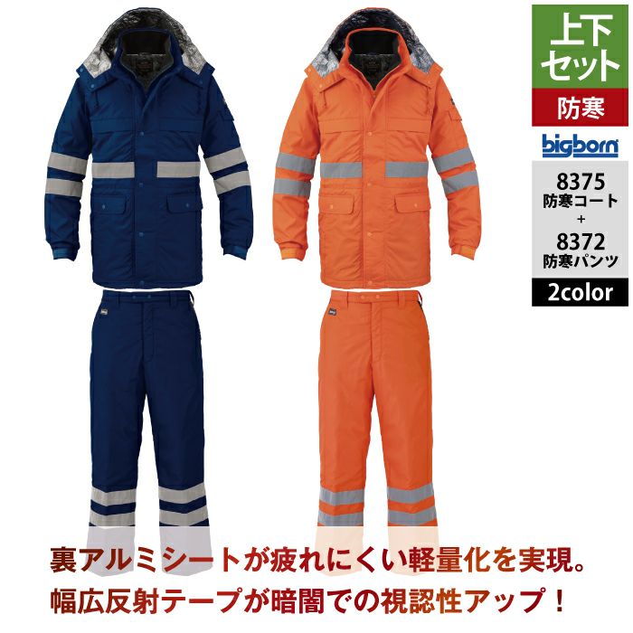 作業服 作業着 ビッグボーン bigborn 作業服 上下セット 8375 防寒コートM-3L と 8372 防寒パンツ M-3L 作業着 作業ズボン