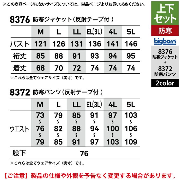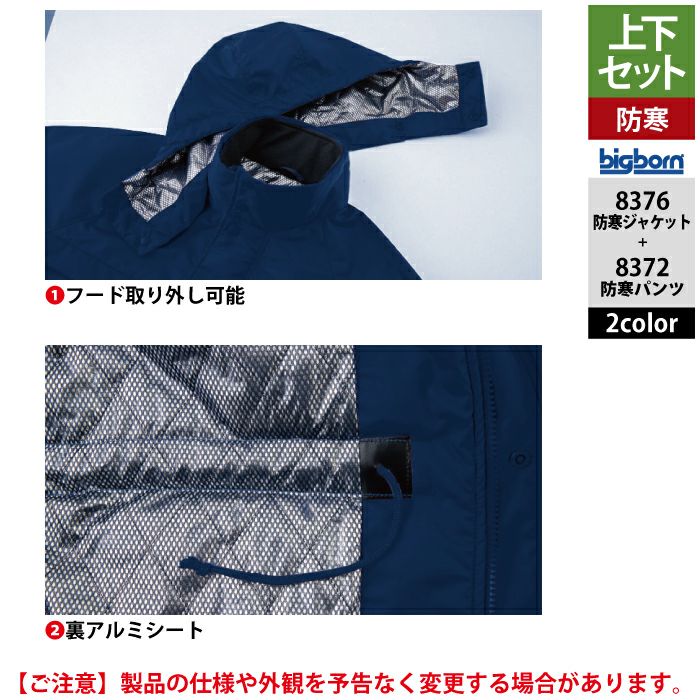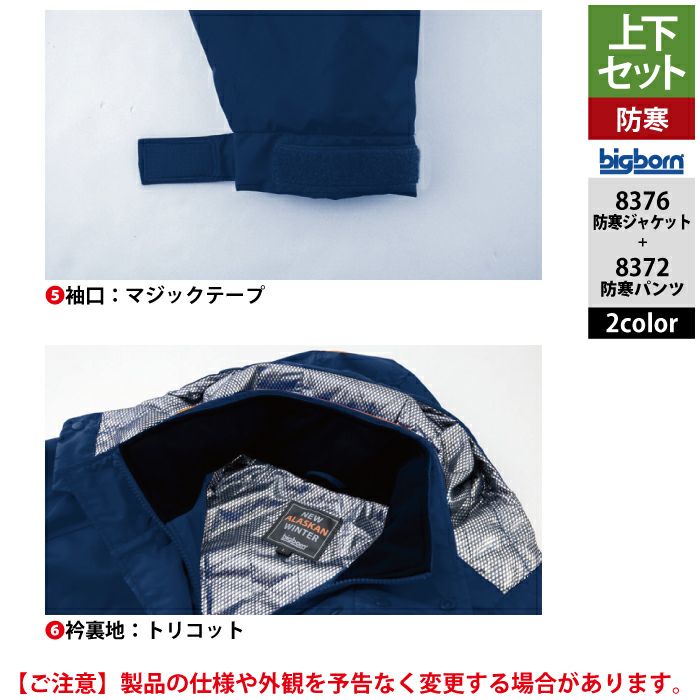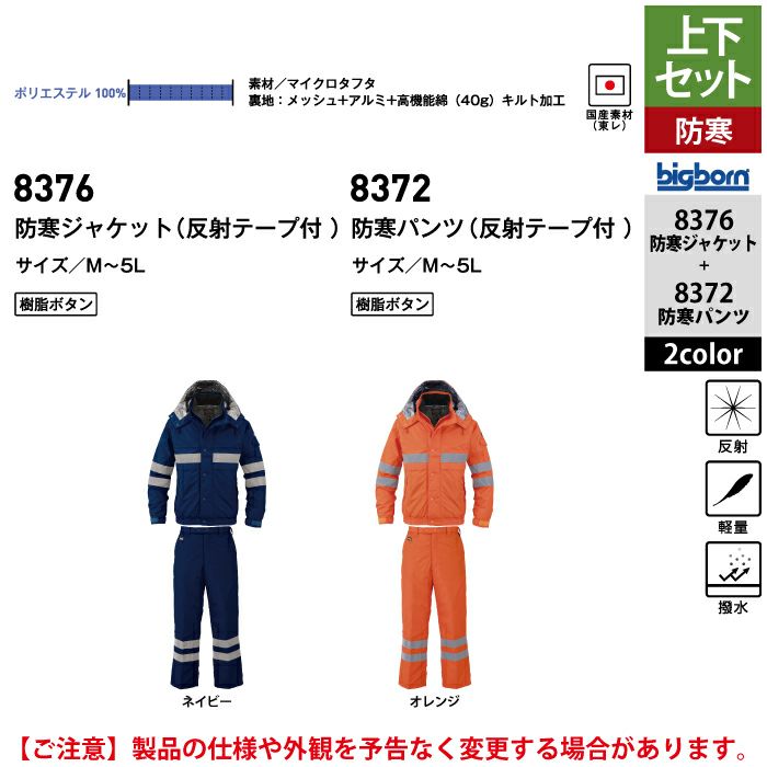 作業服 作業着 ビッグボーン bigborn 作業服 上下セット 8376 防寒ジャケットM-3L と 8372 防寒パンツ M-3L 作業着 作業ズボン