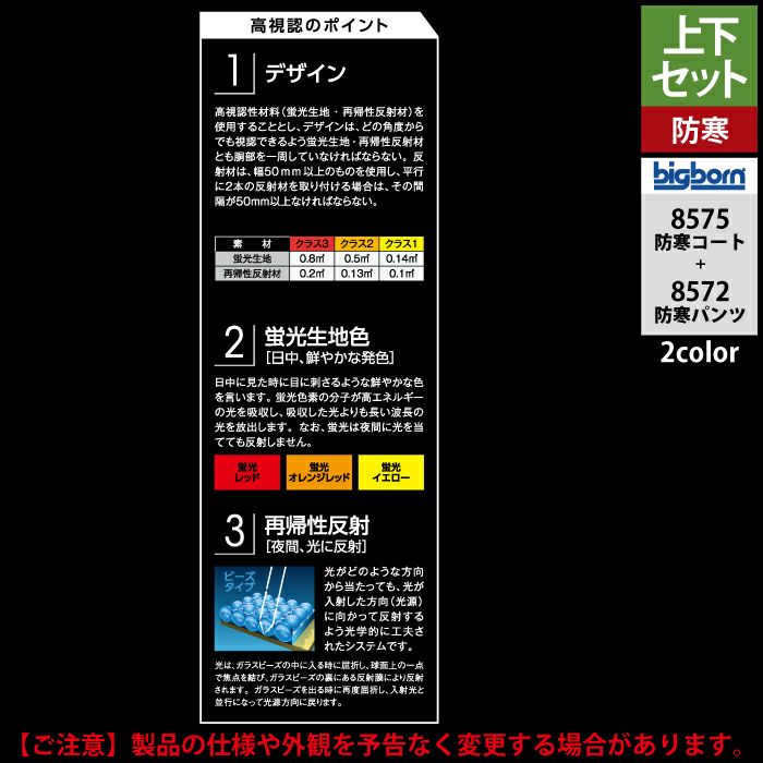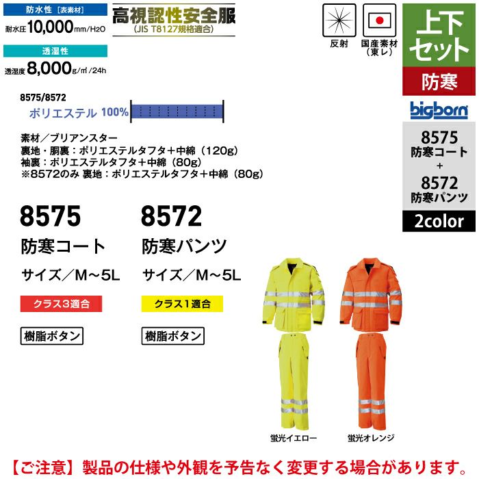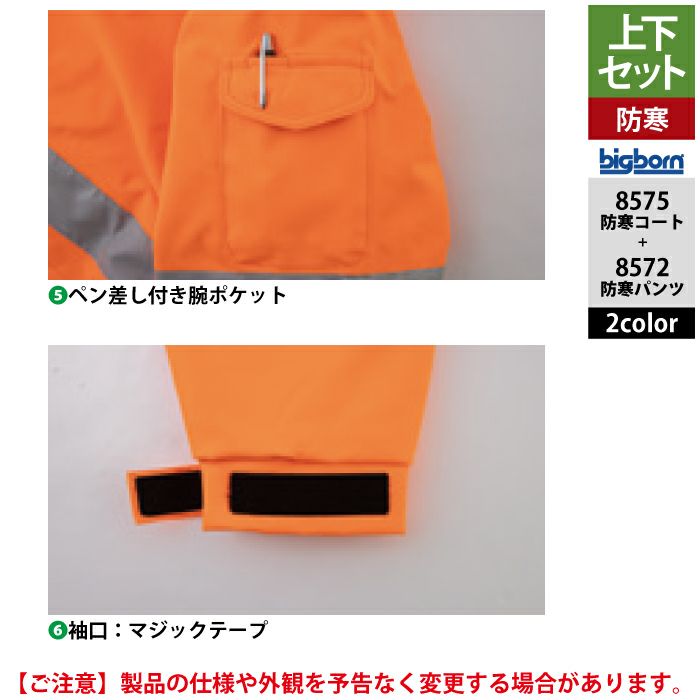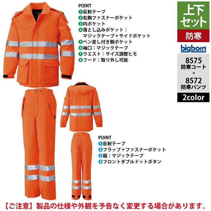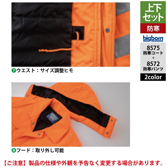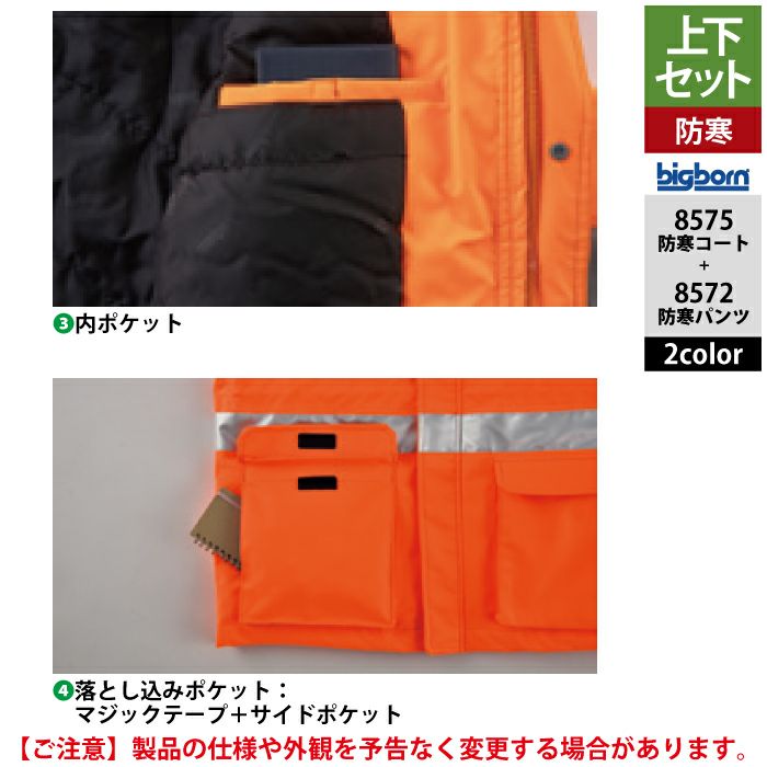 作業服 作業着 ビッグボーン bigborn 作業服 上下セット 8575 防寒コートM-3L と 8572 防寒パンツ M-3L 作業着 作業ズボン